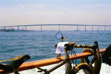 Above: The Coronado Bay Bridge with Barbara's bike hanging on the rail in the foreground.