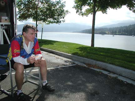 Above: Larry eating a welcome bowl of hot chili. Lunch included home-made German-style potato salad, sandwiches with all the fixings, including biker favorites peanut butter and jelly! There was a wonderful apple pie with tart, firm Washington apples for desert.