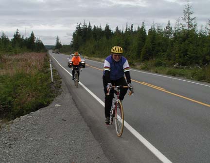 Today's ride was very straightforward, with few turns and only mildly rolling hills. There was no "liquid sunshine," but after some initial sunlight, the overcast became solid, and the air remained fairly cool. Road conditions were very good, with only an occasional logging truck to contend with.
