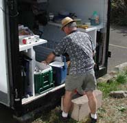 Above: Hans Dobusch, originally from Berlin, Germany, joins us as tour support driver and sag host. Patty (a.k.a. "Mom") Nielson, our Washington sag hostess, will rejoin the group again in San Francisco.