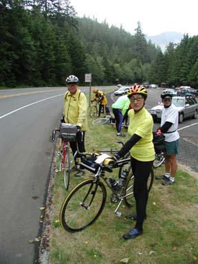 Above: After 35 miles of white-water views, we headed up into the coastal forests. We bicycled up two long climbs into the clouds heading toward our luncheon reward just past the summit.