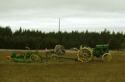 Above: When it first started to shower, we stopped to put on windbreakers or jackets, and found ourselves next to this lovely antique John Deere tractor proudly displayed near a farmer's front yard.