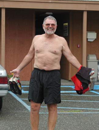 Above: Warm at last! John grins and exclaims, "I feel like a native Oregonian!"