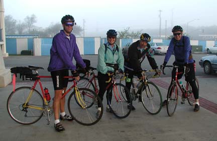 Above: The Denver coalition took off from the motel in the morning ready to start the big ascent. From left to right: Eric, Gail, Bernie, and George.