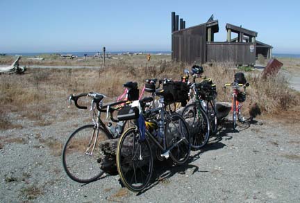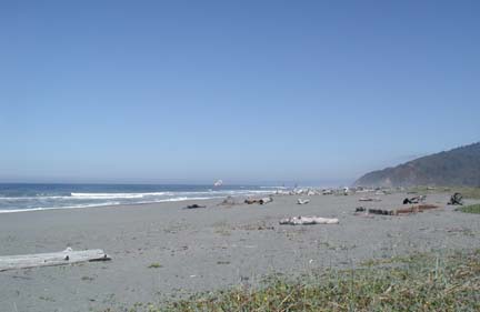Above: At mile 40 we stopped to have lunch at a beach in Redwood National Park. Sandy set out a lovely picnic buffet and everyone eat heartily. There were convenient driftwood logs next to our picnic area where we could park our bikes.