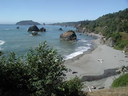 DESCRIPTION: Mileage: 73 miles. Terrain: Series of ascents and descents. Highlights: As we leave the dunes and marshes of Crescent City, we pass through the Northern gateway of the Redwood Coast. We will be traveling through Del Norte Coast Redwoods State and Redwood National Parks. After passing The Trees of Mystery, we cross the Klamath River Bridge, the community of Orick, and then rejoin the coast to Arcata. SPECIAL NOTE: Joel and Tina write about this day: "You have a formidably stiff climb just south of Crescent City with a double top. But it is a very pretty area."