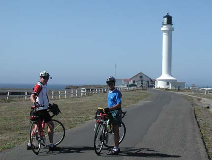 Today was a lovely morning of cycling through Mendocino headlands, with tourist shopping and lighthouse viewing. By early afternoon, however, we were assaulted by ferocious 35 - 40 mph headwinds being sucked in by the rising heat over the inland valleys. It was a beautiful but challenging day!