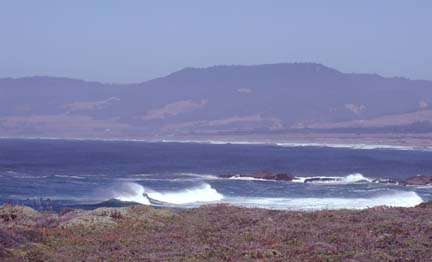 Above: By the time we got to the lighthouse, it was about 2 p.m. and the heat over the inland areas caused the winds to kick up to 35 - 40 mph gusts. This is a picture of the headlands near the lighthouse; see the veil off the top of the waves!