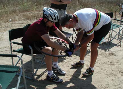 Above: When we got to the motel in Solvang, most riders realized that they needed to do some serious bike cleaning. The ride through farm country and Foxen Canyon had thrown a lot of grit into the chains. Here Leonard is wiping down the frame of his Trek carbon fiber bicycle.